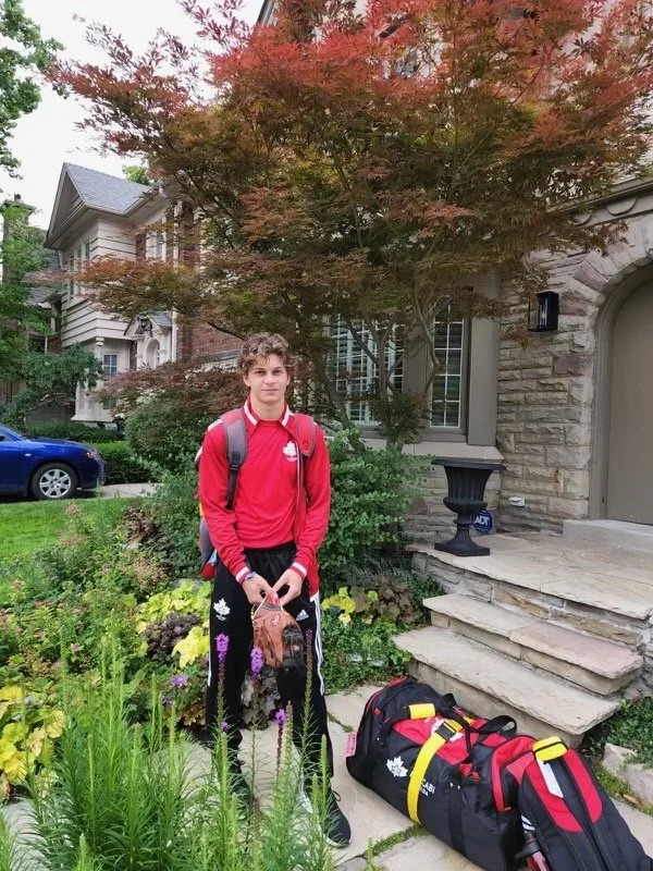 Hayden Cole Taylor, 16, of Toronto, Ontario, embarking on his trip to Israel to compete on the Maccabi Canada Baseball Team in Tel Aviv. He pitches and plays first base and outfield.